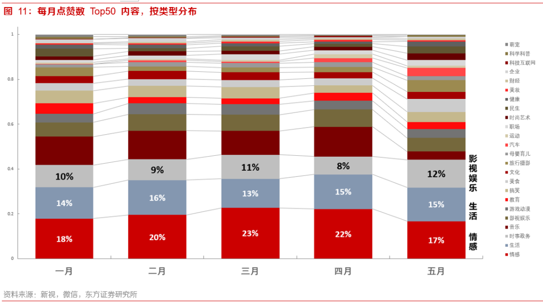 2.1.2点赞数量:情感/生活/影视娱乐占大头