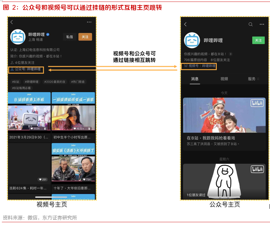 视频号添加两个流量流量:1)3/16 将公众号和视频号进行互联网打通;2)4/2 开始企业微信支持转发、观看视频号内容。这个更新,又视频号增添了新的重要入口和出口。1)公众号和视频号的双向打通:意味着,若创作者同时开通了视频号和微信公众号,则他可以选择在公众号的主页或者视频号的主页添加对应的视频号/公众号链接,用户可以通过点击链接直接跳转到视频号/公众号主页。
