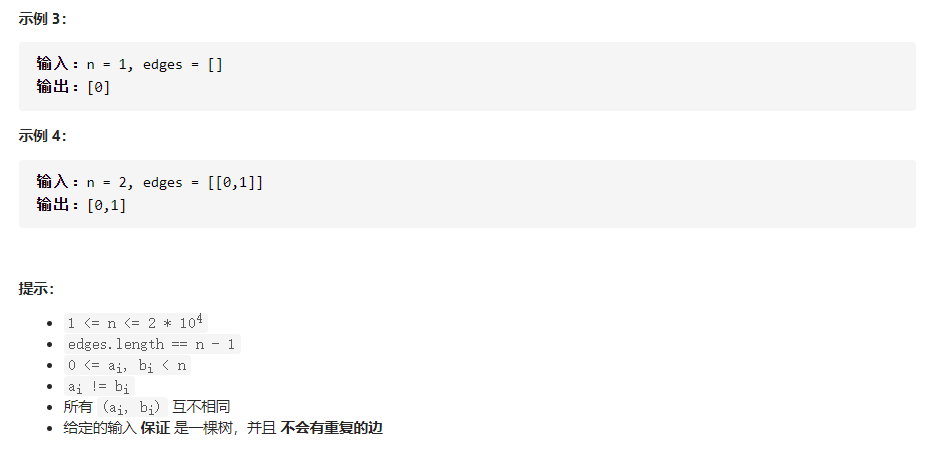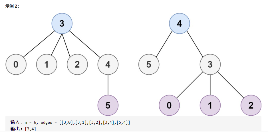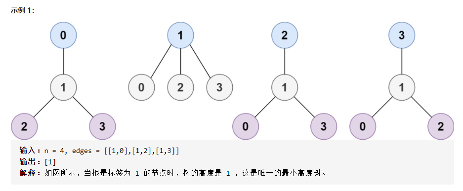 请你找到所有的 最小高度树 并按 任意顺序 返回它们的根节点标签列表。