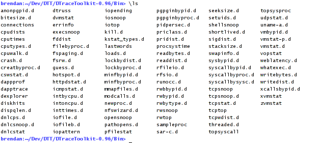 但我十分了解他讲的这些工具,我为自己的 DTraceToolkit 编写了类似的功能。所以我说:「我以前做过这些,我自己写过做这些事情的工具!」
