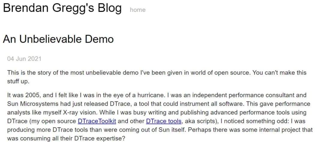 2005 年,我被卷入飓风中心。当时我是一名独立的性能分析顾问,而 Sun Microsystems 刚刚发布了 DTrace,这是一个可以检测所有软件的工具。当我忙着使用 DTrace 编写和发布高性能工具时,我发现一个问题:此前我开源的 DTraceToolkit 和其他 DTrace 工具,比 Sun 公司推出的工具要更全面,难道是一些内部项目消耗了他们的技术能力?