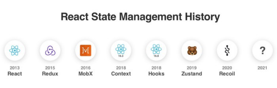 下面,我们以“状态管理”为例来说明。由于 React 缺少传统的依赖注入系统(DI 是通过组件组合实现的),所以社区不得不自己解决这个问题。然而,后来就变成了一遍又一遍地解决这个问题,每年都会带来一套新的标准。