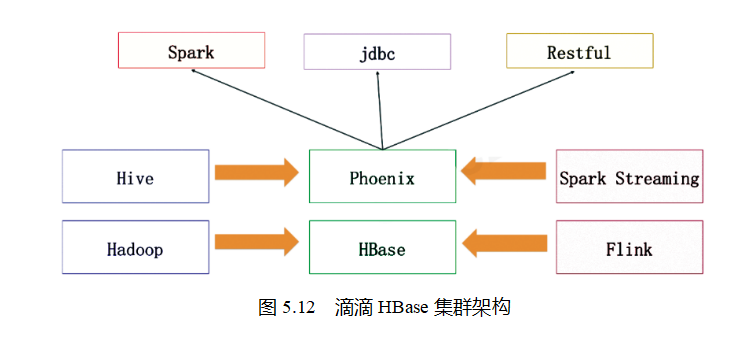此外,滴滴还重度使用HBase,并对相关产品(HBase、Phoenix)做了一些自定义的开发,维护着一个和实时、离线两个大数据平台同级别的HBase平台,它的架构图参见图6。