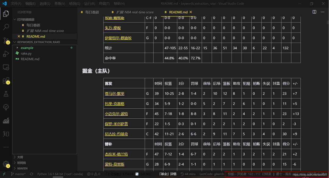 商店链接:https://marketplace.visualstudio.com/items?itemName=liyangjj.NBARealTimeScore