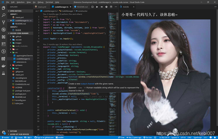 在 VS Code 中连续写代码一小时(时间可配置),会有杨超越提醒你该休息啦~
