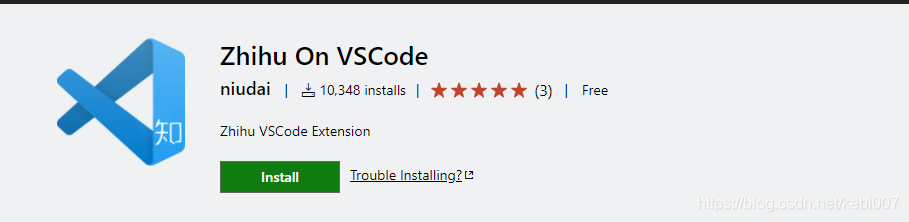 商店链接:https://marketplace.visualstudio.com/items?itemName=niudai.vscode-zhihu