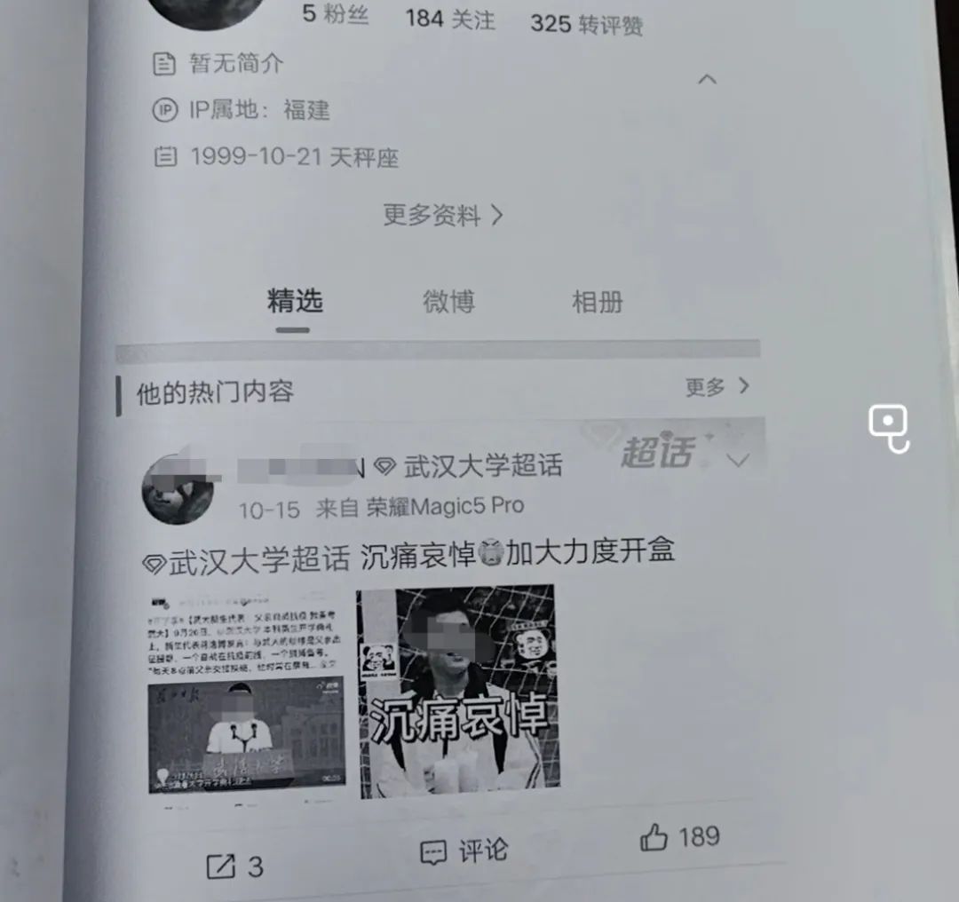 通报显示:对涉及我校学生的网上举报,经调查核实,根据相关规定,学校研究决定,给予2022级本科生肖某某记过处分。武汉大学历来对违规违纪行为零容忍,一经查实,绝不姑息。