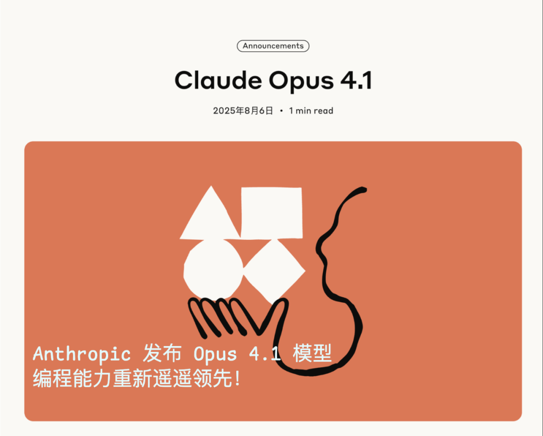 就在刚刚,8月6日凌晨,Anthropic突然发布Claude Opus 4.1模型,编程能力重新遥遥领先!