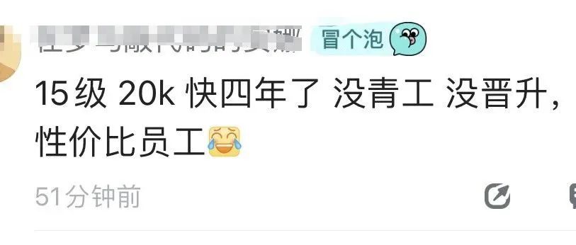 薪资20k,在一线城市谈不上少,但放在大厂职级体系里,不算突出;干了四年,却没有晋升,意味着职业路径几乎停滞;“高性价比员工”这几个字,更像是公司对他的精准定义:既能干活,又不用花太多成本。
