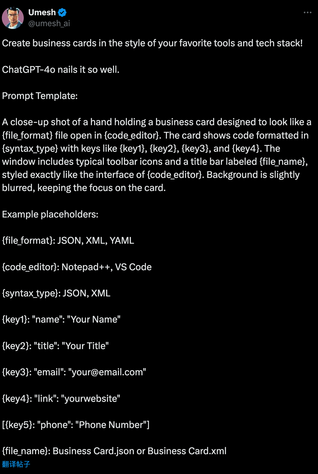 近期看到一组 ChatGPT 生成的程序员名片,感觉还挺有意思,内行一看就是干开发的,拿出去交际用,也不知道行不行~
