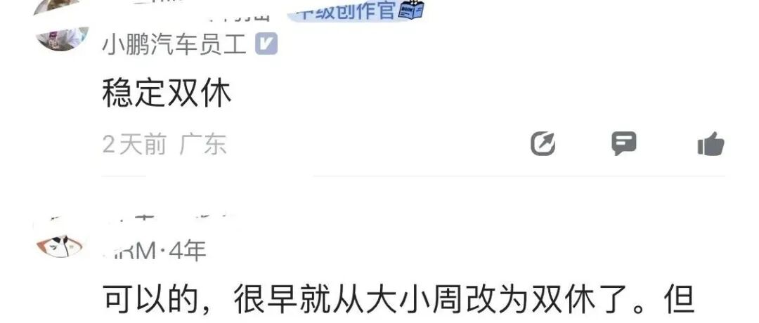 因为至少在制度层面,小鹏没有把“周末必须加班”写进条款,也没有把大小周当成理所当然的企业文化。换句话说,周末属于员工本该拥有的生活权利,哪怕不能完全避免加班,起码它不是被规定的常态。
