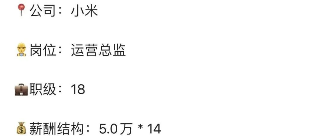前几天,一位小米的老员工在社交平台爆料:他在小米干了10多年,岗位是运营副总监,职级18级,薪酬结构是5万*14,总年薪大概70万。