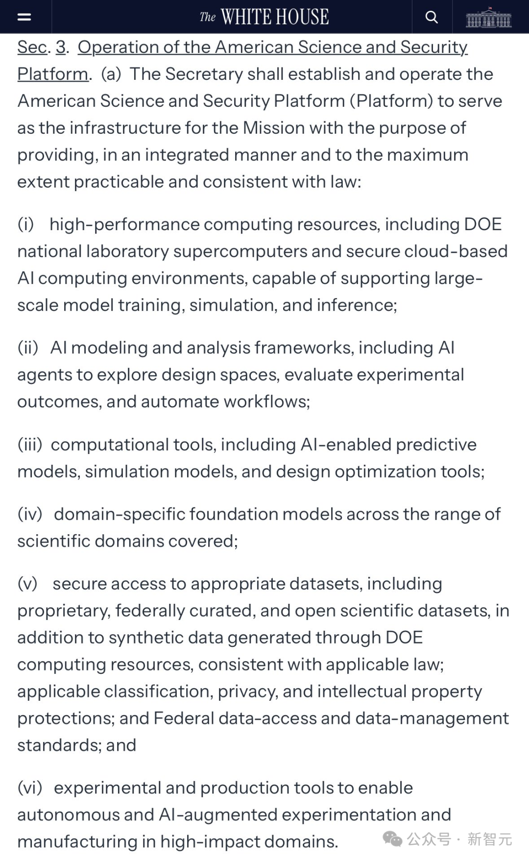 为了支撑这一宏大愿景,行政令要求建立「美国科学与安全平台」。