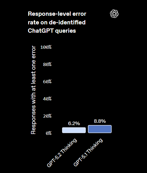 对于专业用户而言,这意味着在进行研究、写作、分析和决策支持时,模型犯错更少,从而让日常知识工作更加可靠稳健。