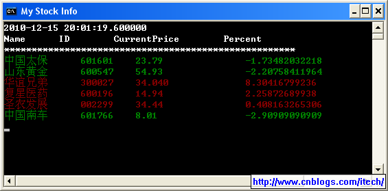 本程序使用python3.1实现的一个运行于Windows的控制台小程序,用来显示你所关心的股票的实时价格。