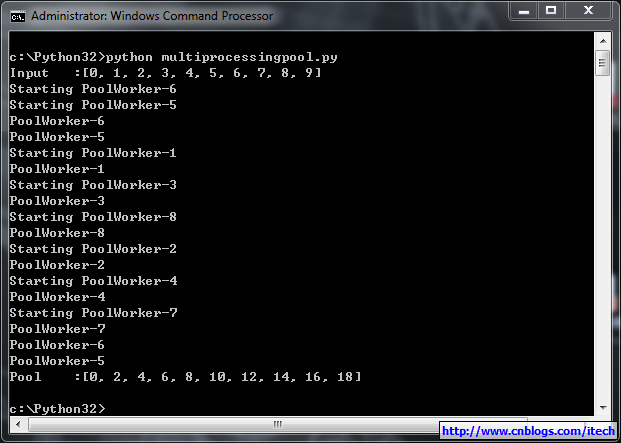 上面的实例中可以看到当前的CPU是8core的,pool中公有8个进程,但是有10个任务,其中有2个进程处理了2个任务。