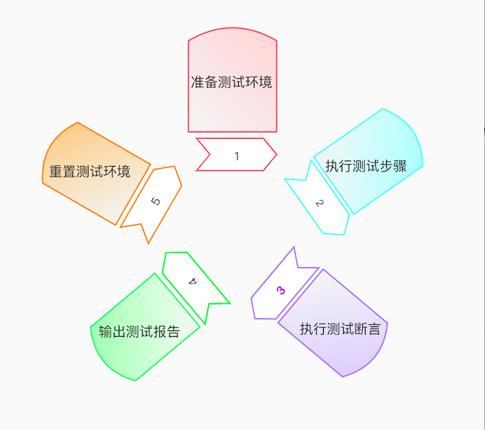 以上五个步骤,也分别对应了自动化测试流程的五个环节,如图2-2所示:首先,测试前需要准备好测试环境;之后,执行测试步骤;紧接着,执行测试断言,也就是判断执行的结果是否符合预期;然后,输出测试报告,显示自动化验证的结果;最后,还原测试环境,释放系统资源,让测试环境回归起始状态。
