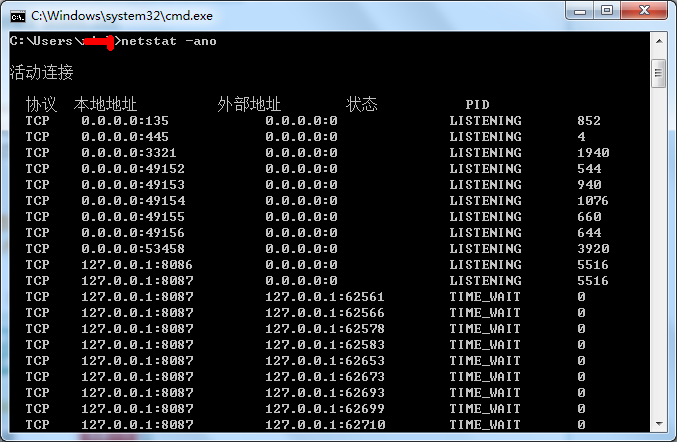 就可以调出当前系统所有正在使用的端口号和该端口号相关联的程序