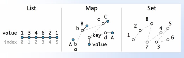 集合就是将若干用途相同、近似的“数据”结合成一个整体,从体系上分为三种: