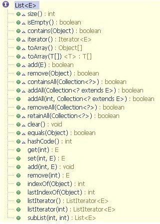 List是Collection的子接口,实现List接口的容器中存放的对象是有顺序的,而且可以重复。List容器中存放的对象都有一个整数型的序号,记录该对象在容器中的位置,可以根据序号来访问容器中的元素,JDK提供实现List接口的类有ArrayList、LinkedList等。接口主要方法如下: