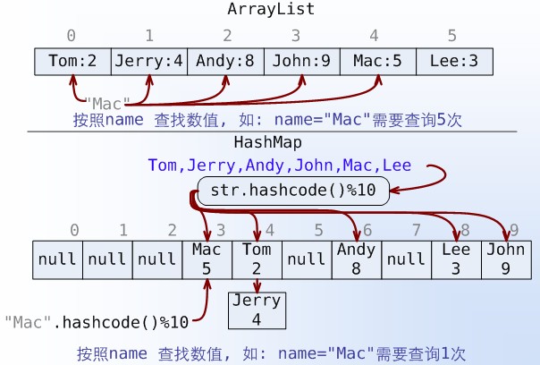 java.util.Hashtable实现了java.util.Map接口,也是采用哈希表的形式将”Key”映射到”Value”,用法与HashMap基本相同。HashMap与Hashtable的区别: