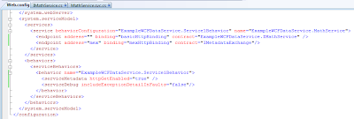 This behavior can be disabled by removing the MEX end-point. In the Web.Config file below, the end-point is commented out.