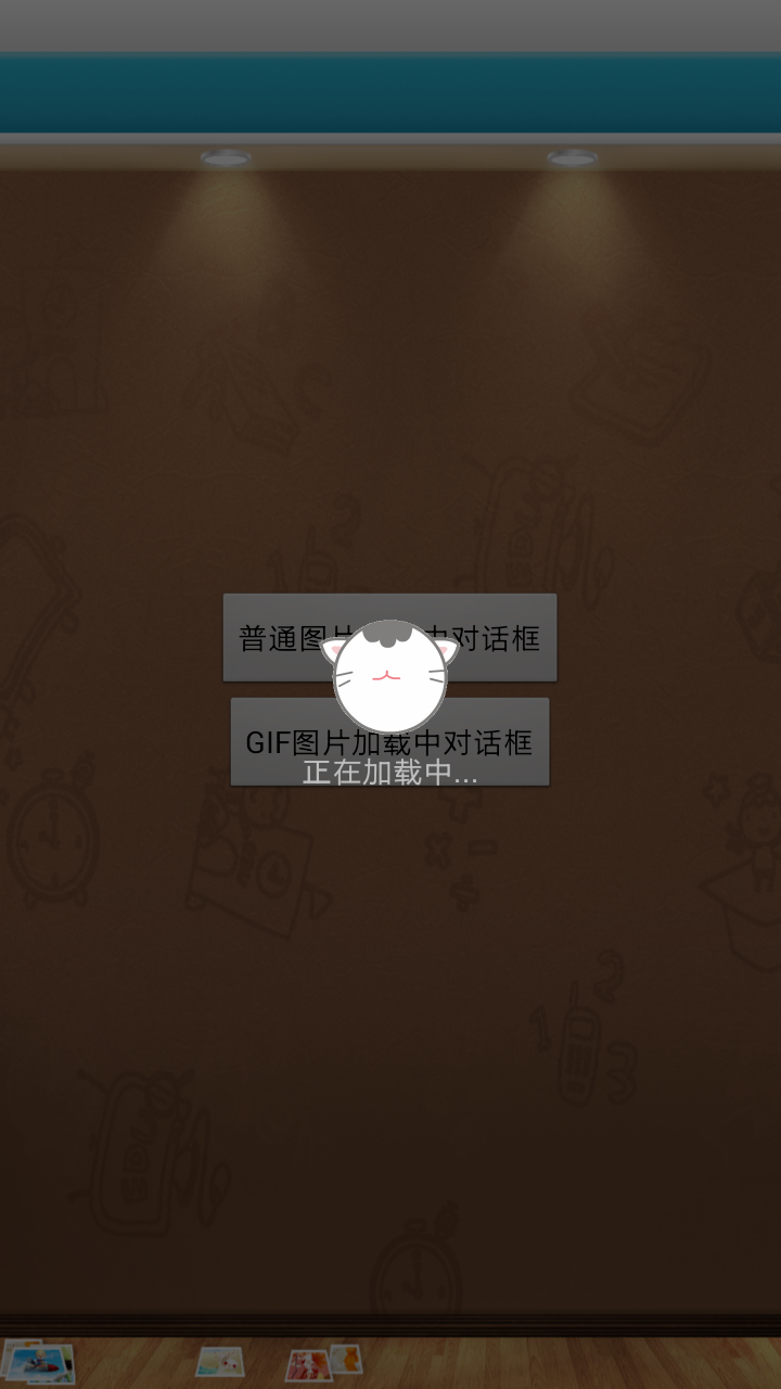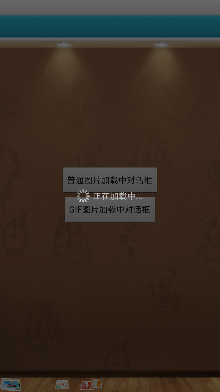 网络加载时需要一段时间,这段时间可以加载一个加载中对话框,这里定义了两个,一个是加载普通图片做成的桢动画,一个是git动画