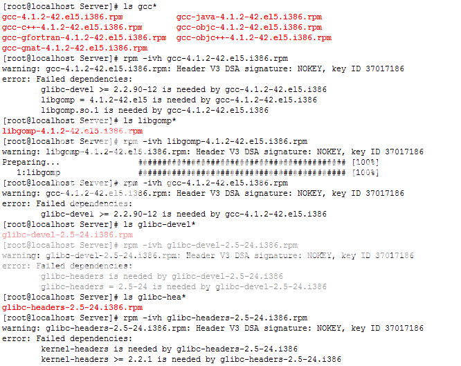 安装gcc,我晕啊,gcc的依赖项太多了,太深了,只能逐个安装