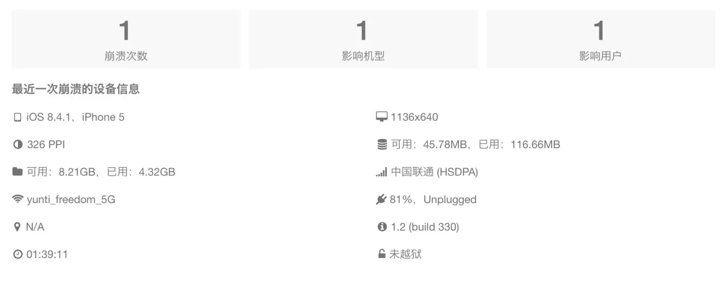 「设备信息」、「用户步骤」、「堆栈信息」、「详细数据」,包含大量信息,非常有帮助。