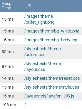 上面两个性能测试是我随机访问一次typo首页得到的,我们可以看到,对css,image,js的请求,耗费了数十毫秒的操作。为什么请求一个css会耗费如此多时间呢?从下面的图中,我们可以看到原因: