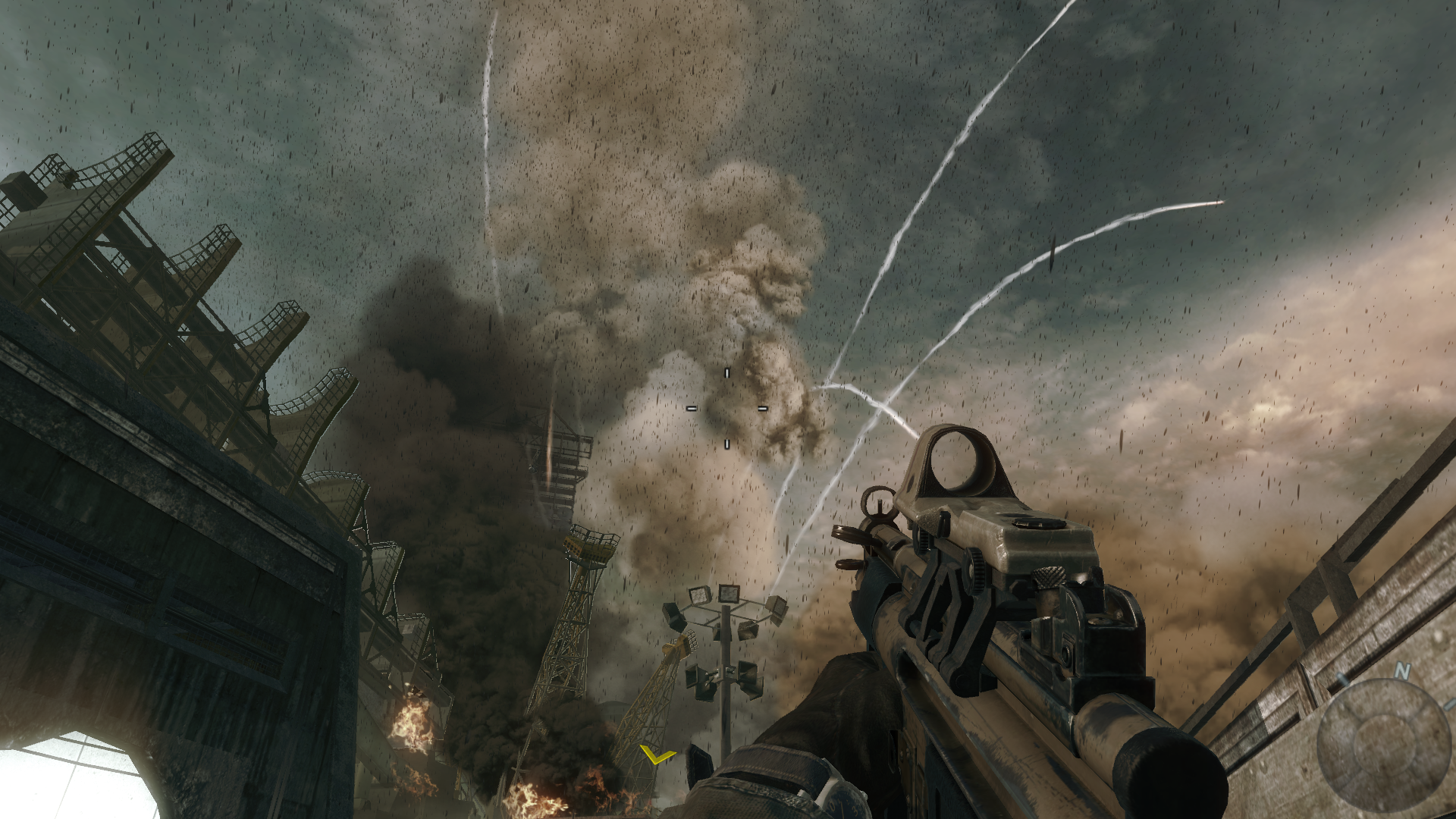- 过场,UI组织的很差,完全没有mw系列的上流感,morden warfare一个上流勋章转,然后一个google earth的军事版,往下一沉直接切入战场,端起冲锋枪开战,何等的畅快,哪像cod7的闪的哥一到过场只能去俯卧撑了