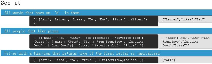 我们可以同时使用N多过滤器,待会我们建立自定义的过滤器的时候就可以看到如何同时使用多个过滤器,在那之前我们继续来看几个Angular自带的过滤器