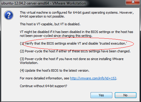 (1) Verify that the BIOS/firmware settings enable VT and disable ‘trusted execution.’
