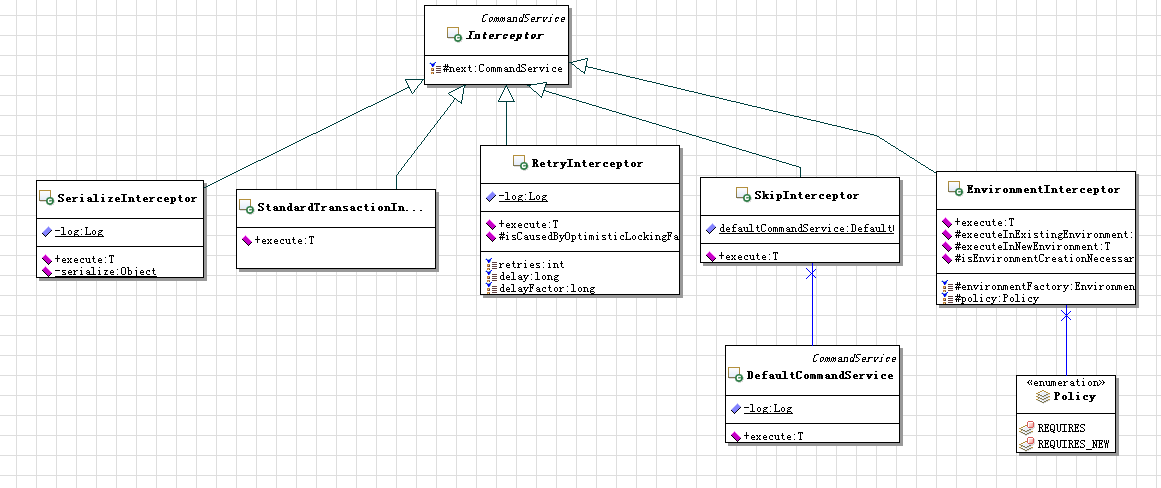 下面结合JBPM的拦截器代码简单介绍一下这个模式