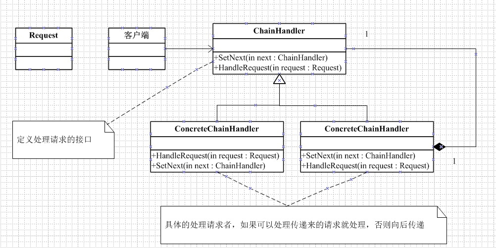 1.客户提交一个请求,其沿着这条链传递直到得到处理;
