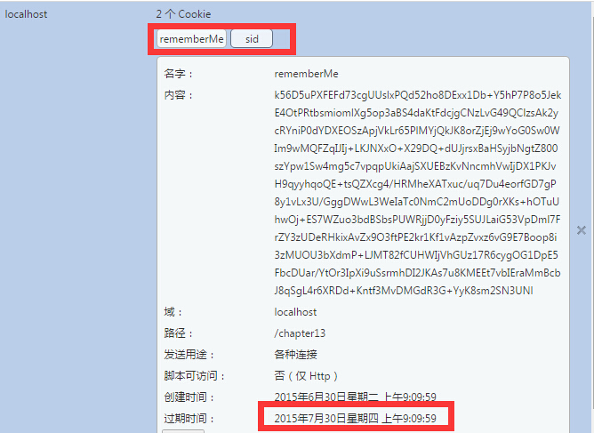 1、访问http://localhost:8080/chapter13/,会跳转到登录页面,登录成功后会设置会话及rememberMe Cookie;