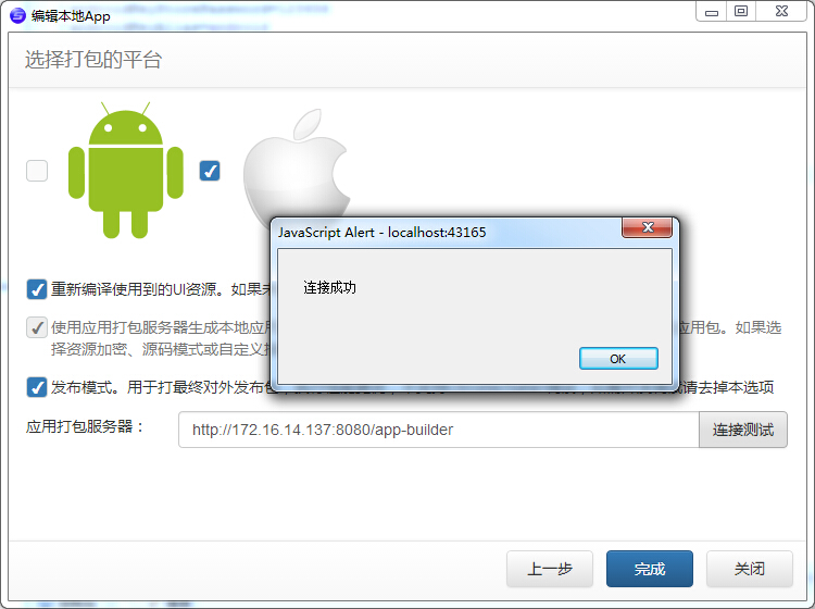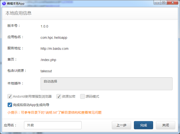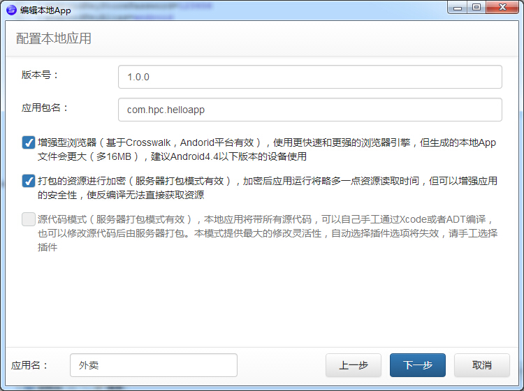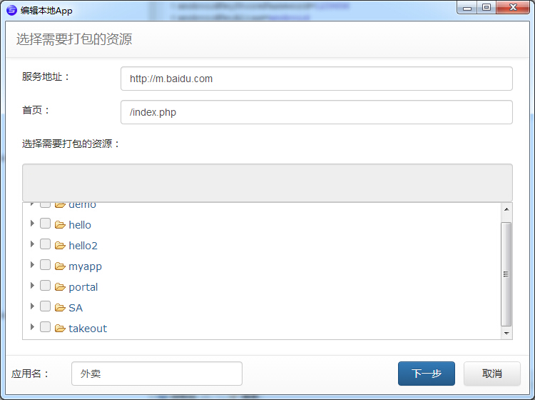 套浏览器壳的方式的话,就只要填写服务地址,首页,打包资源是没有的,也就 不需要勾选了
