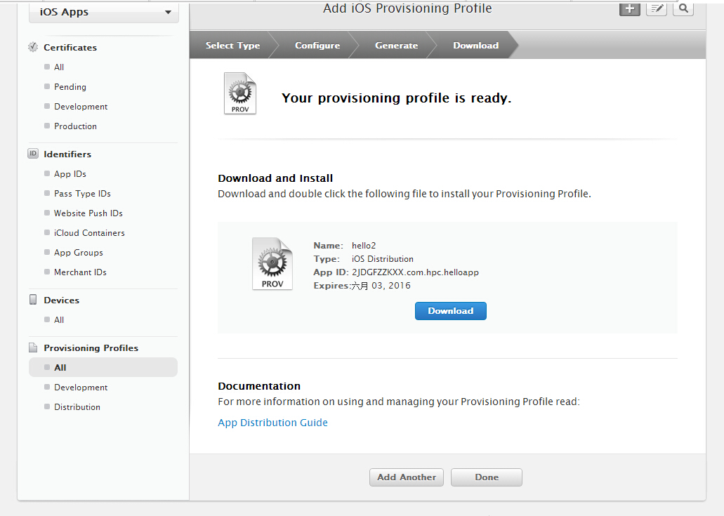 iOS App的描述文件, ios.distribution.mobileprovision;