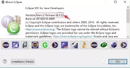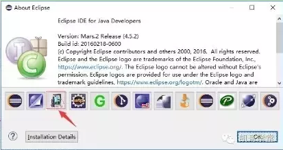 最后,等待安装完毕。点击ok,eclipse会自动重启。在重启之后,你可以在About Eclipse菜单项点开后,看到这个图标