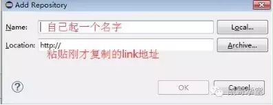 Name这儿的名字自己可以随意取名,Location这里将上面的那个网址粘贴到这里。然后你就会看到ok按钮可以点击,点击它。