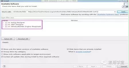 就去找swt,这是以前的办法。结果发现原来最新版的eclipse自己带有一个windowbuilder插件,而此插件