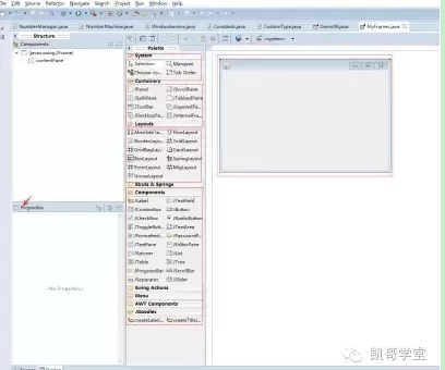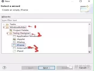 ②、选中工程,然后在new菜单选择other 菜单项 找到上图中的JFrame