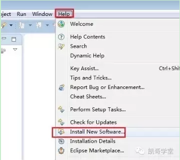 再次,打开我电脑上的eclipse,点击Help菜单,选择Install New Software...这个菜单项。
