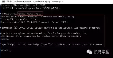 使用dos连接mysql,输入 mysql -u用户名 -p密码
