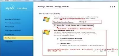 >在Windows Service details 下的 Windows Service Name 里给 MySQl 起一个服务的名称,让它默认就行了,如果之前已经安装过,请主意名称。>在Start start MySQL Server at System Startup(开机启动MySQL服务器)的前面打上勾,以便让 MySQL 随Windows 的启动而启动,如果你不想让 MySQL 随 Windows 的启动也可以不勾选。>在run windows service as下的选择Standard system account(当前系统账户支持)选好后点击Next