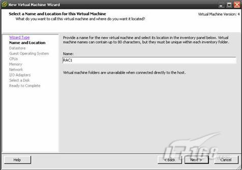 输入你希望出现在客户端右侧窗格中的虚拟机的名称( RAC1 ),然后点击“下一步”按钮。