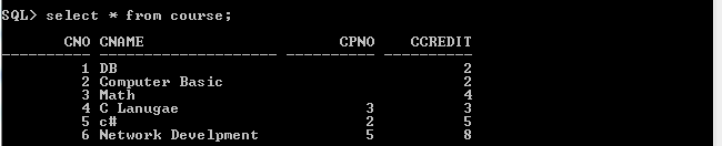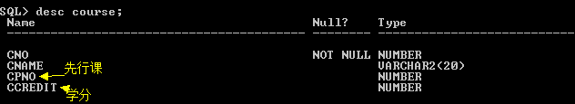 课程表:Course(Cno,Cname,Cpno(先行课),Ccredit(学分))
