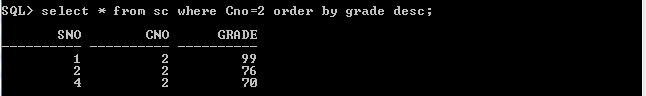 【例子16】从course表中,查找出课程号2及其的学生成绩,结果按分数降序 排列。