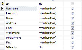 那么按照这个model,使用EF Model First来建立数据库,得到的Woman表如下: