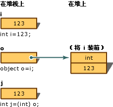 装箱就是将一个值型变量隐式地转换为引用类型对象,虽然也可以显示转换,但一般都不需要使用到。对值类型进行装箱会在堆中分配一个对象实例,并将该值复制到新的对象中。